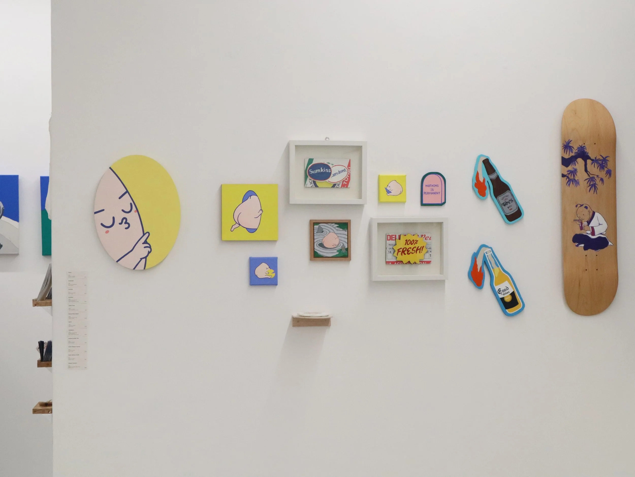 Evolving from digital drawings to a diverse body of work encompassing murals, readymades, installations, and paintings, notable exhibitions include her 2022 solo exhibition, 'Into the Wild' at Art Porters Gallery, the interactive 'Fresh Fortune' installation at Night Festival 2019, and murals at Urban Design Festival 2018 and The Substation 2019.