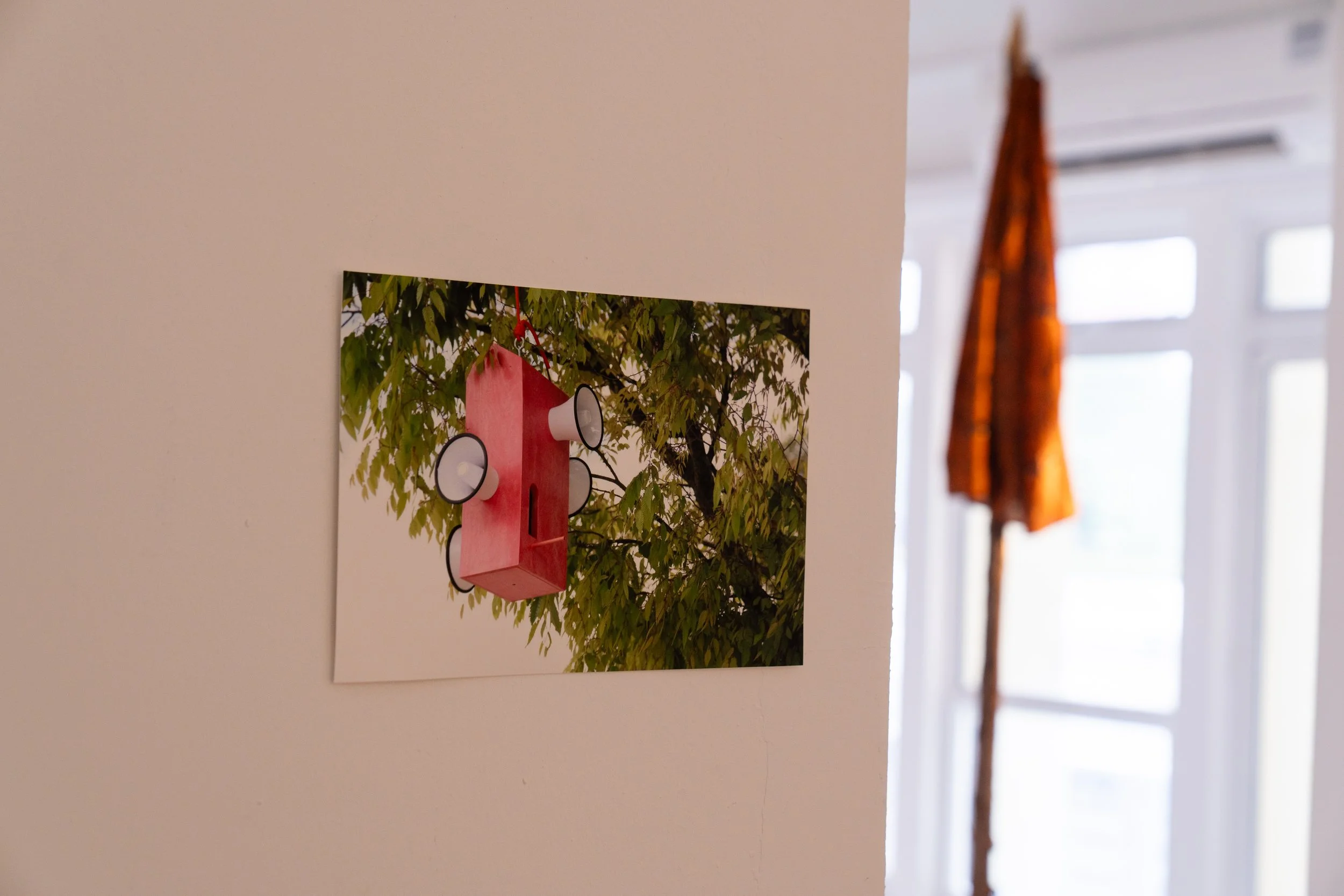 The journey begins with a photograph of a work by Sébastien Gschwind: a nest fitted with a megaphone, inviting us to listen to the birds and carry their voices further. From there, the path leads into the installation, where all voices share the same horizon. Lou Villapadierna's piece is heard as one bird among many, listened to through headphones in the intimacy of a one-to-one encounter with an author.